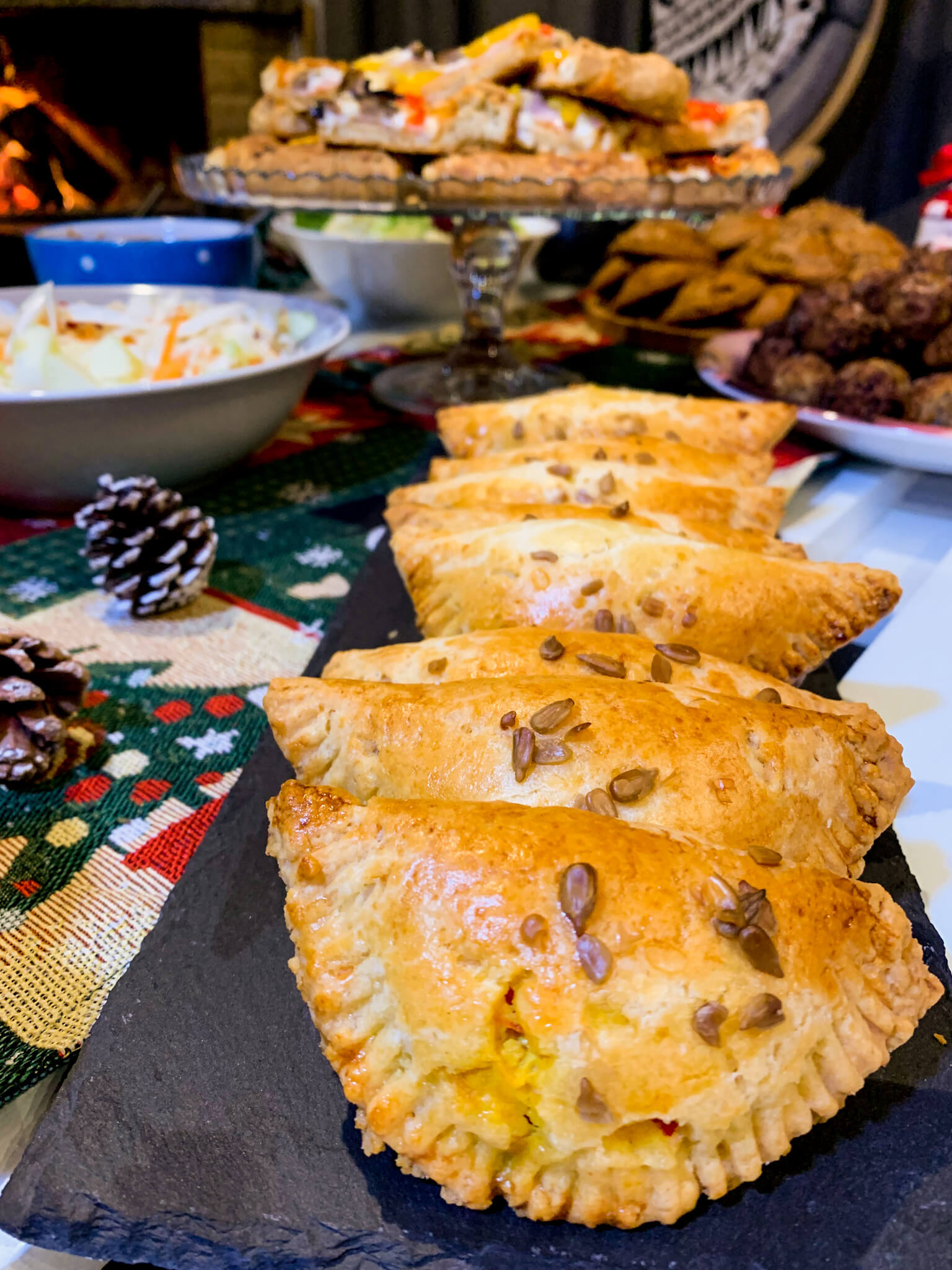 Με αφορμή αυτές τις μέρες, τις γιορτινές, που όλοι δεχόμαστε επισκέψεις και όλο και κάτι προσφέρουμε, σκέφτηκα να σου δώσω μερικές από τις συνταγές που έφτιαξα το περασμένο Σάββατο που είχα καλεσμένους στο σπίτι. Ένα μενού που αποτελείται από απλά τσιμπολογήματα ιδανικά για έναν μπουφέ ή για συνοδευτικά σε ένα τραπέζι.
