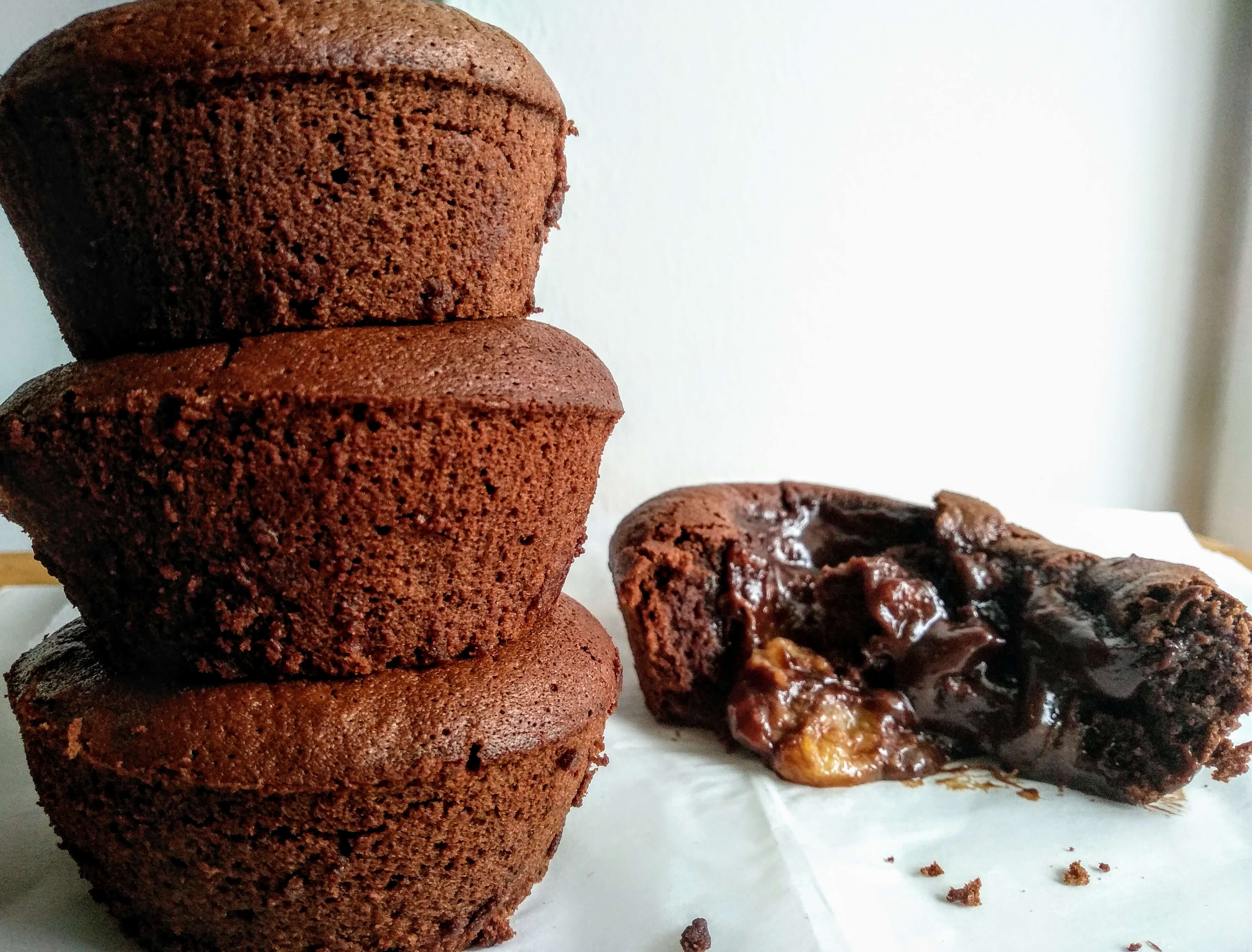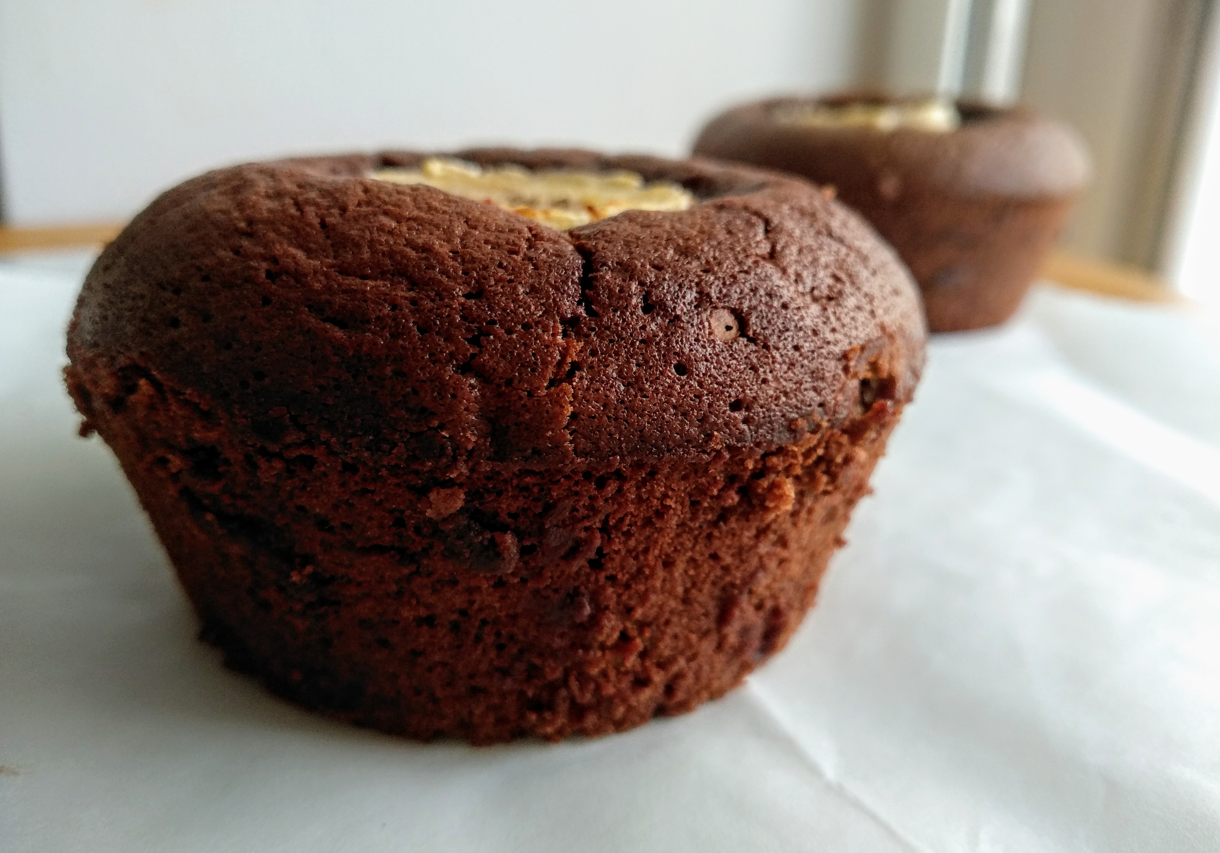 ΑΤΟΜΙΚΑ ΦΟΡΜΑΚΙΑ ΑΛΟΥΜΙΝΙΟΥ. Σε αυτή την περίπτωση, μοιράζεις απλά το μείγμα σου, ισόποσα, στα φορμάκια. Αν το επιθυμείς κόβεις σε λεπτές φέτες μια μπανάνα και τοποθετείς από μία φέτα στο καθένα, από πάνω. Ψήνεις στους 200 βαθμούς, στη τρίτη σκάλα για 10΄ αν το θες ζουμερό και για 15′ αν το θες λίγο πιο στεγνό. Αυτοί οι χρόνοι ισχύουν αν γεμίσεις τα φορμάκια μέχρι πάνω, όπως έχω κάνει εγώ, αν τα θες πιο φλάτ τα γεμίζεις μέχρι τη μέση και μειώνεις τον χρόνο ψησίματος για ζουμερό αποτέλεσμα.