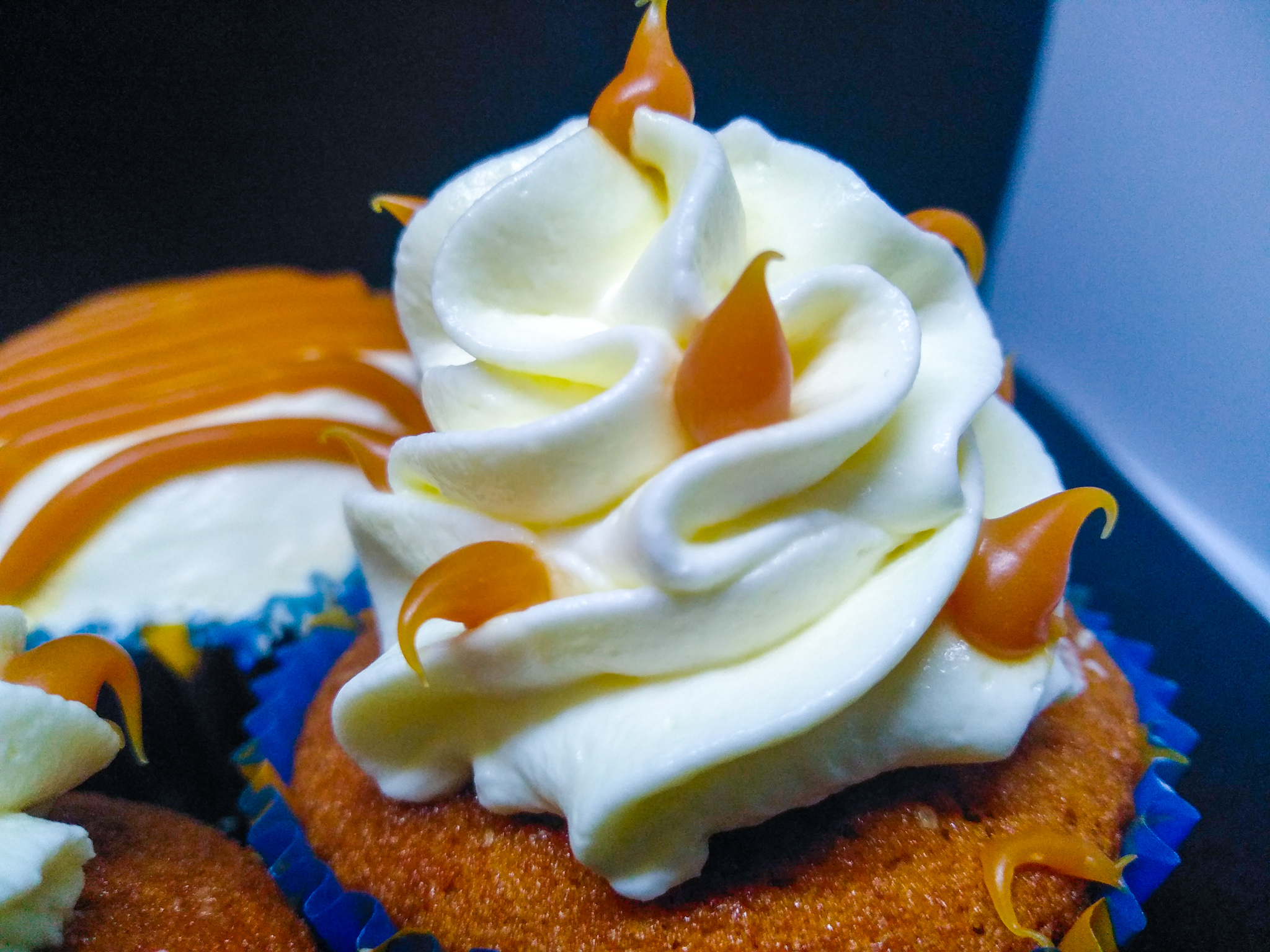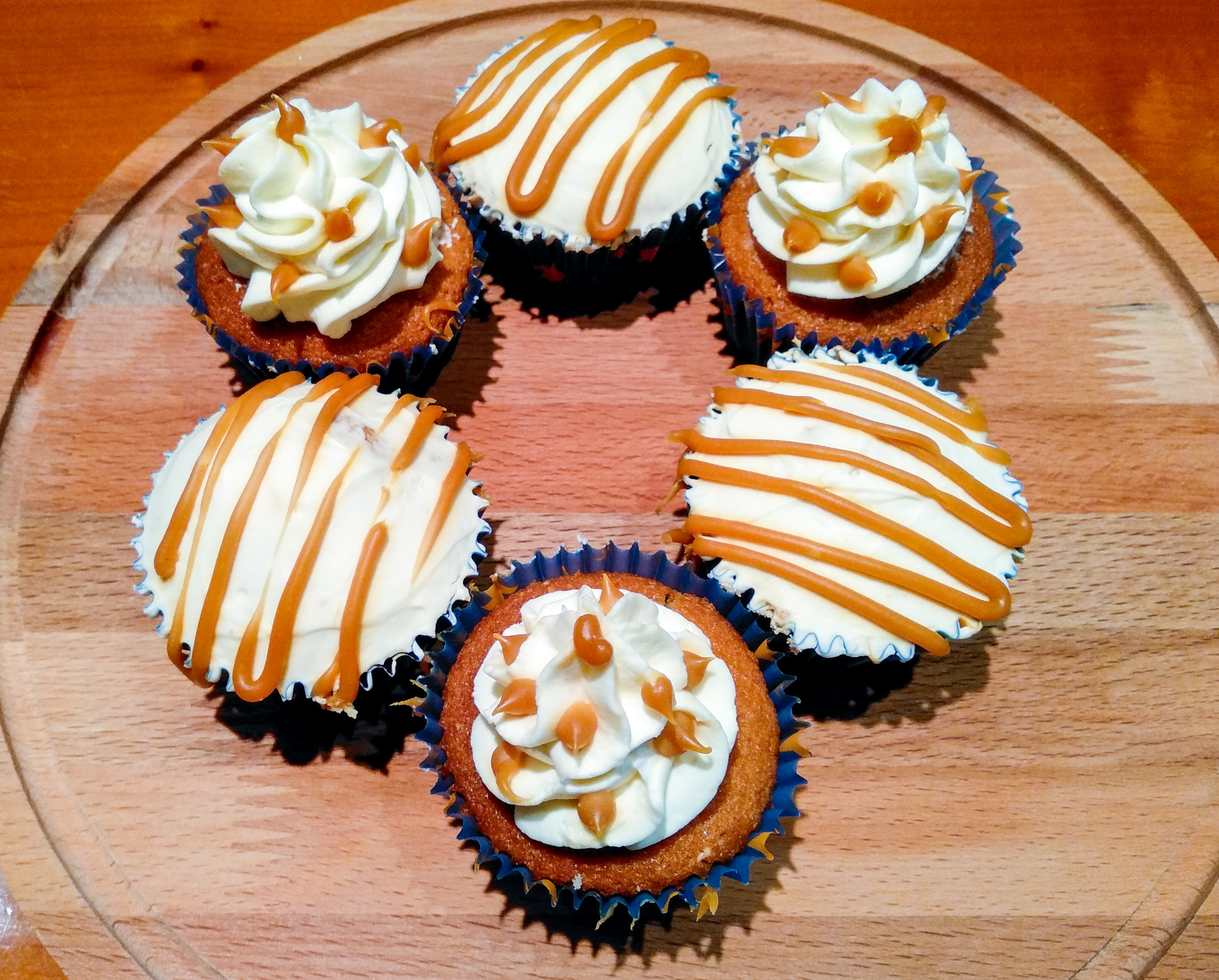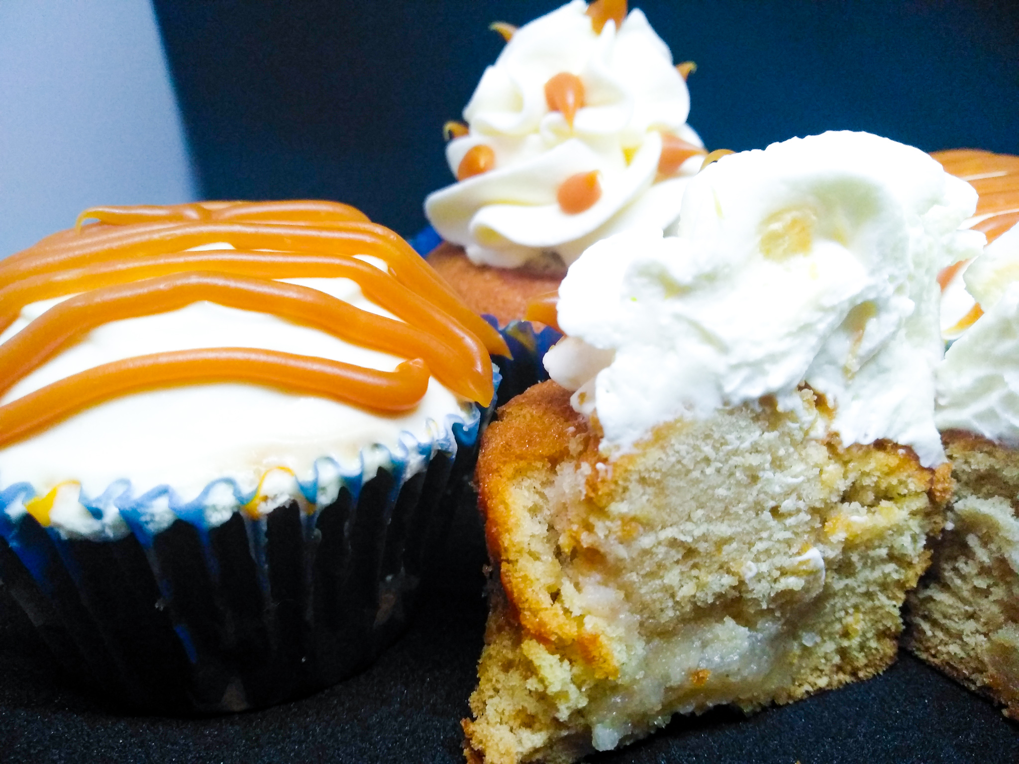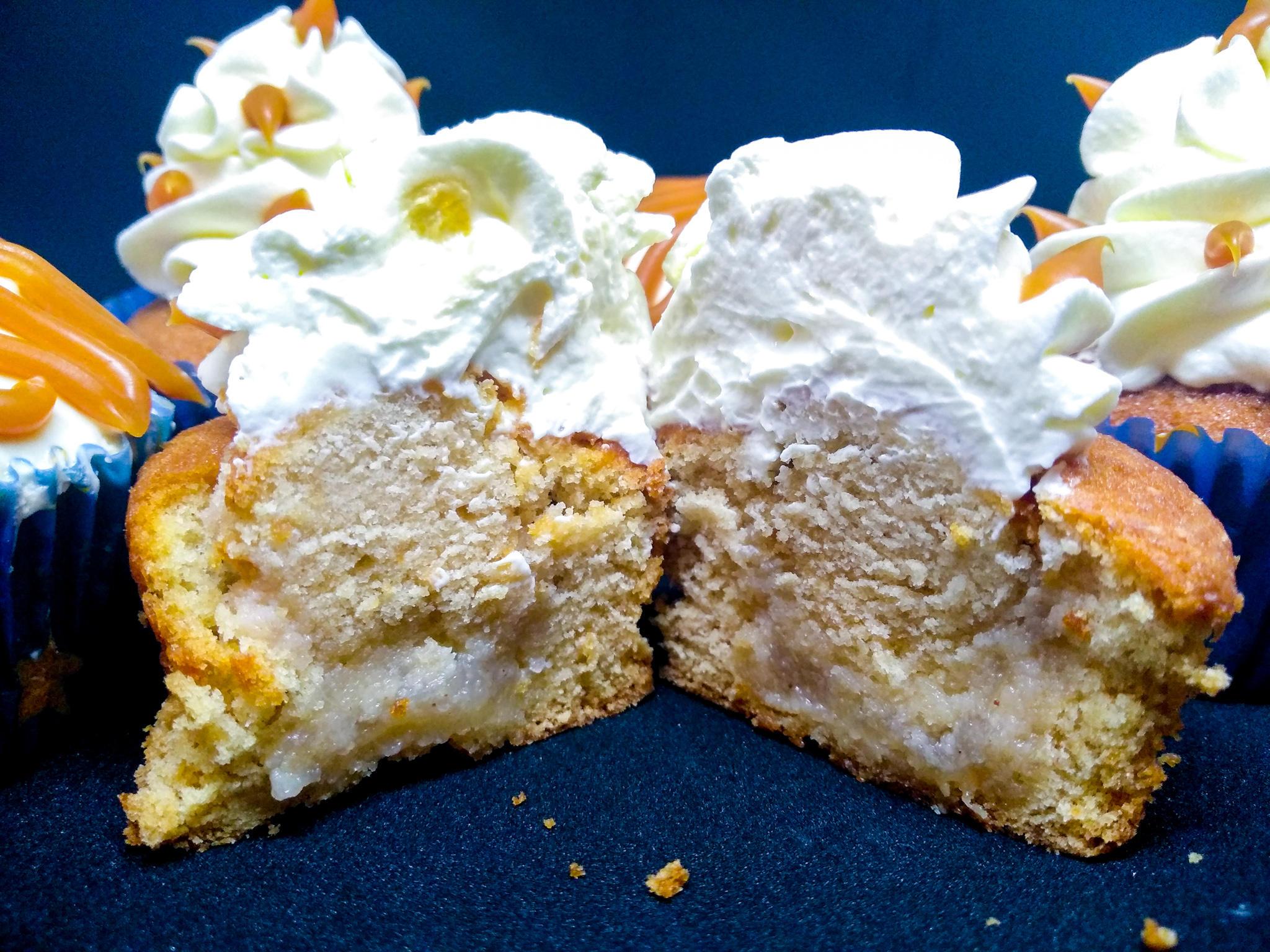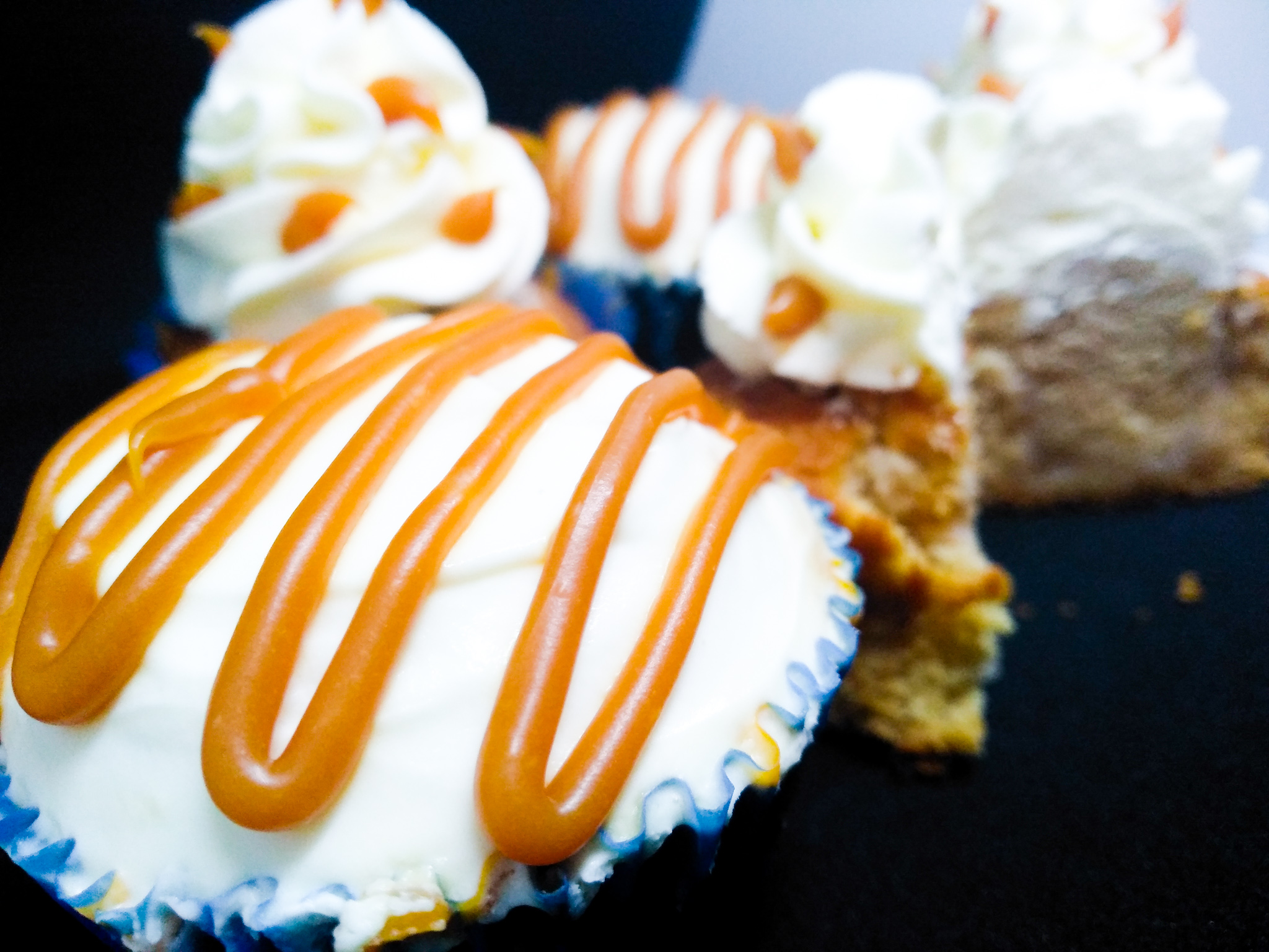 Αφού λοιπόν έχουν κρυώσει όλα. Γεμίζουμε τα cupcake μας με τον υπόλοιπο πουρέ αχλάδι. Η διαδικασία είναι απλή με ένα μαχαιράκι ή με ένα καθαριστή κουκουτσιών για μήλα κάνουμε μια τρύπα μέχρι τη μέση περίπου. Προσοχή να μην το τρυπήσουμε μέχρι κάτω. Στη συνέχεια γεμίζουμε με ένα κουταλάκι τον πουρέ και καλύπτουμε πάλι από πάνω με το κομματάκι κέικ που αφαιρέσαμε πρίν. Το πώς θα γαρνίρουμε από πάνω τα κεκάκια μας είναι καθαρά θέμα επιλογής. Ή που θα βάλεις τη κρέμα τυριού σε μια σακούλα ζαχαροπλαστικής και θα κάνεις μια ροζέτα από πάνω ή που θα πάρεις μια σπατουλίτσα και με ωραίες κινήσες θα την αλείψεις προσεχτικά και ομοιόμορφα από πάνω. Θα σε βοηθήσουν λίγο και οι φωτογραφίες μου σε αυτό, πιστεύω! Γαρνίρεις με την αλατισμένη καραμέλα από πάνω και βάζεις ψυγείο, αν προτιμάς, πρίν τη κατανάλωση. Κατά τη γνώμη μου πάντως όταν τρώγεται κρύο είναι ακόμα πιο λαχαριστό! ΣΛΟΥΡΠ!