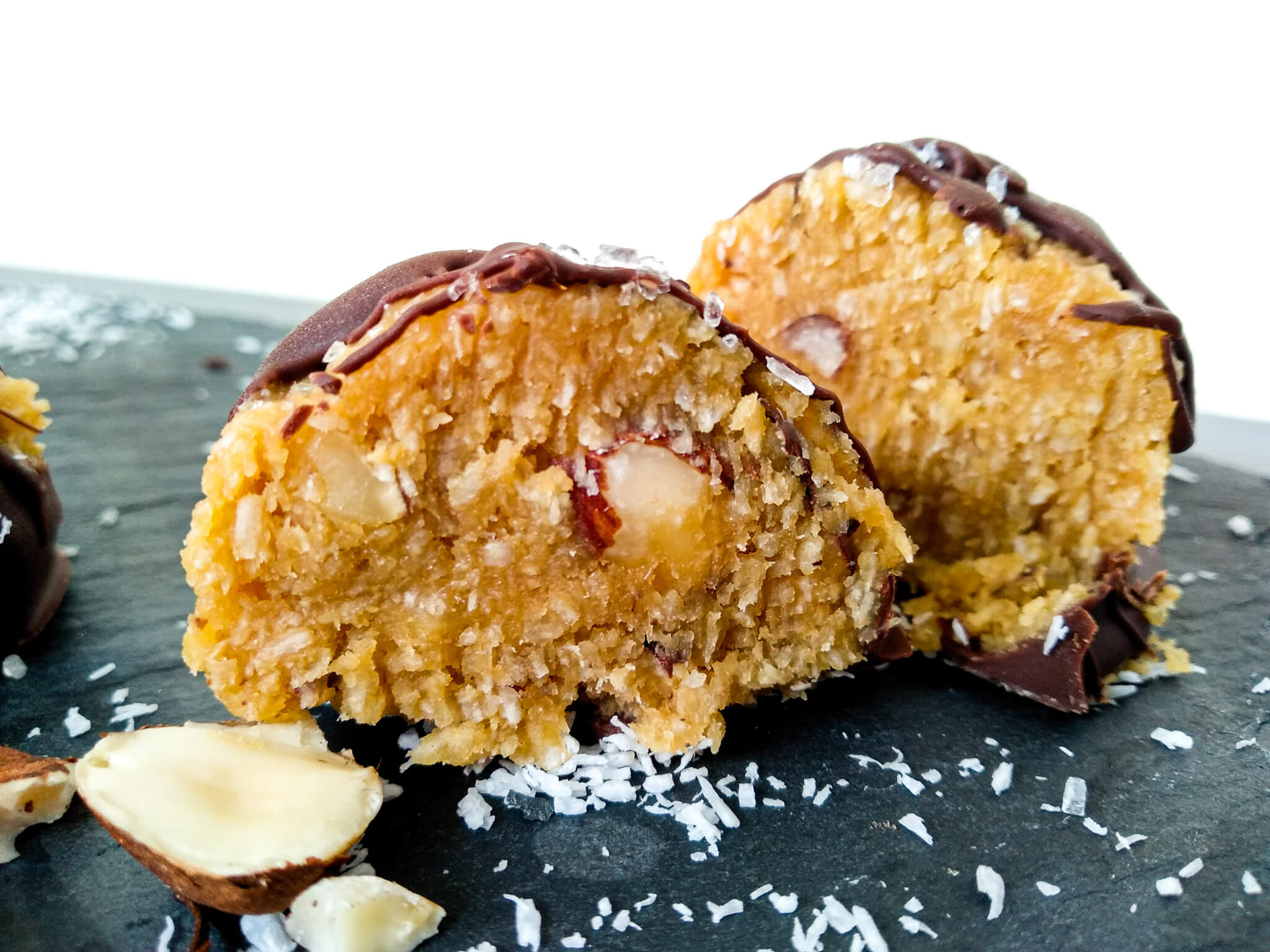 Η συνταγή είνα πανεύκολη και γρήγορη, χρειάζεται μόνο λίγη περισσότερη προσοχή στην παρασκεύη της καραμέλας. Αξίζει να αναφέρω σε αυτό το σημείο ότι την καρύδα και τα φουντούκια τα προμηθεύτηκα απ΄τον ΚΑΡΠΟ του Χωραϊτη (https://karpos.gr/) και ο μόνος λόγος που το αναφέρω είναι γιατί έμεινα τρομερά ευχαριστημένη από την ποιότητα των προϊόντων του, από την εξυπηρέτηση και φυσικά από τις τιμές. Προμηθεύσου και εσύ τα απαραίτητα λοιπόν και ξεκίνα για το πιο γρήγορο και νόστιμο τρουφάκι που, ακόμα και αν δεν είσαι υποστηρικτής της καρύδας, πιστεύω ότι θα λατρέψεις.