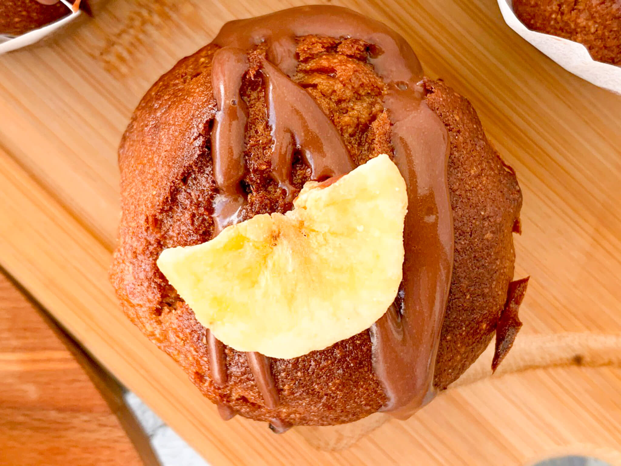 Εφόσον όλα είναι έτοιμα και τα έχουμε αφήσει να κρυώσουν καλά, απολαμβάνουμε όπως θέλουμε. Είτε ρίχνουμε πάνω απ’ τα muffins λίγη σάλτσα σοκολάτας, είτε τα βουτάμε ελαφρά μέσα σε αυτή για περισσότερη σοκολατένια δόση. Ακόμα όμως και χωρίς τη σάλτσα σοκολάτας παραμένουν λαχταριστά και πεντανόστιμα.