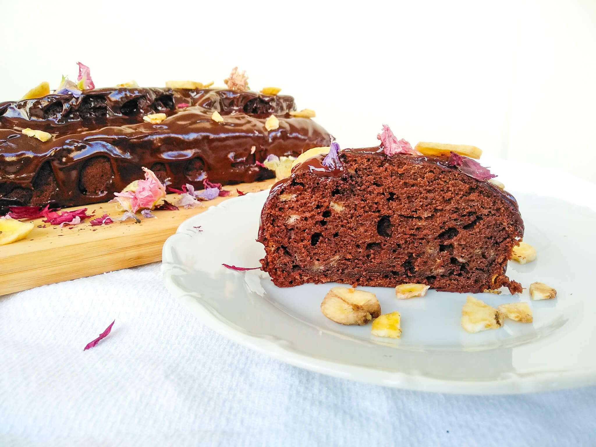Αυτό το chocolate banana bread είναι η τρίτη φορά που το φτιάχνω μέσα σε 1 εβδομάδα. Ξέρω ότι έχω και άλλη συνταγή για banana bread εδώ αλλά ήθελα και μια συνταγή ακόμα πιο εύκολη και χωρίς αυγά και βούτυρα. Κατέληξα λοιπόν σε αυτή τη συνταγή που δεν πίστευα και εγώ πόσο εύκολη είναι. Χωρίς υπερβολή, σε 10 λεπτά είναι έτοιμο για φούρνο, γι’ αυτό το έχω φτιάξει 3 φορές μέσα σε λίγες μέρες γιατί όσο εύκολο είναι να ετοιμαστεί εξίσου εύκολο είναι και να εξαφανιστεί!